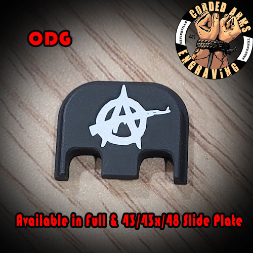 Tags: glock, glock slide plate, custom slide plate, custom glock slide plate, laser engraved slide plate, laser engraved glock slide plate, custom laser engraving, custom clock engraving, Z.O.R.T., zombie, Zombie Apocalypse, AK Anarchy,