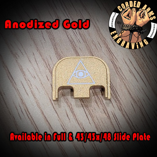 Tags: glock, glock slide plate, custom slide plate, custom glock slide plate, laser engraved slide plate, laser engraved glock slide plate, custom laser engraving, custom clock engraving, All Seeing Eye