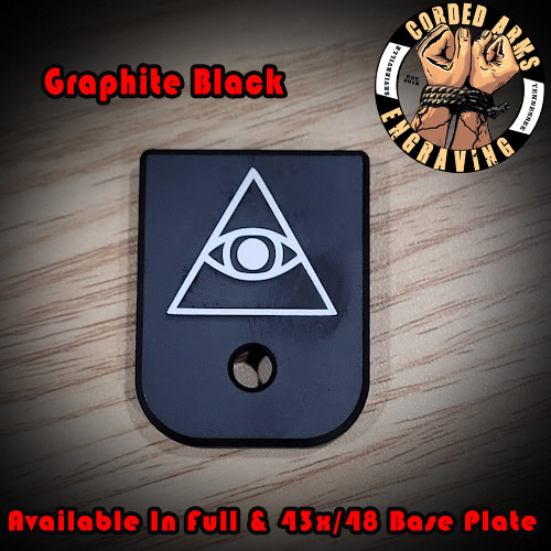 Tags: Glock base plate, glock, glock floor plate, magazine plate, glock magazine plate, laser engraved floor plates, laser engraved glock base plates, All Seeing Eye, Eye of Providence
