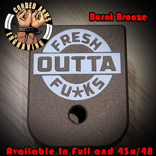 Tags: Glock base plate, glock, glock floor plate, magazine plate, glock magazine plate, laser engraved floor plates, laser engraved glock base plates, Fresh Outta