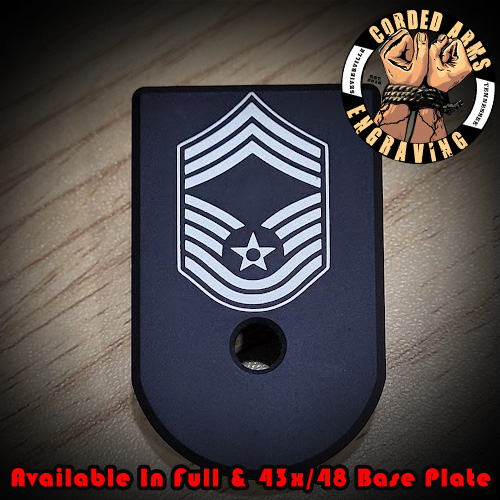Tags: Glock base plate, glock, glock floor plate, magazine plate, glock magazine plate, laser engraved floor plates, laser engraved glock base plates, Chief Master Sergeant