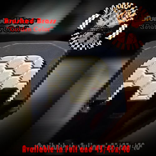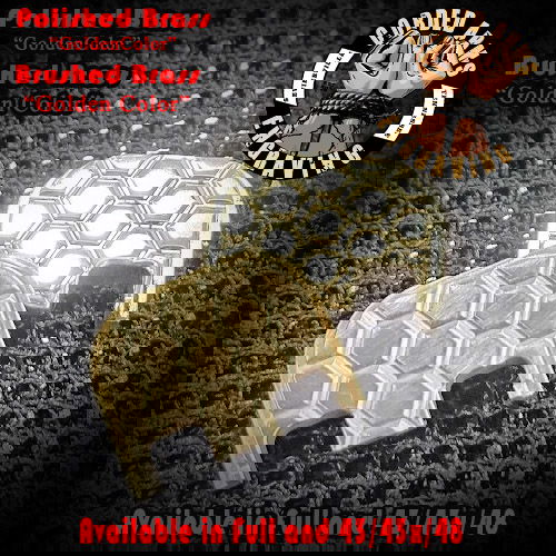 Tags: glock, glock slide plate, custom slide plate, custom glock slide plate, laser engraved slide plate, laser engraved glock slide plate, custom laser engraving, custom clock engraving, Honey Comb Brass, cnc milling