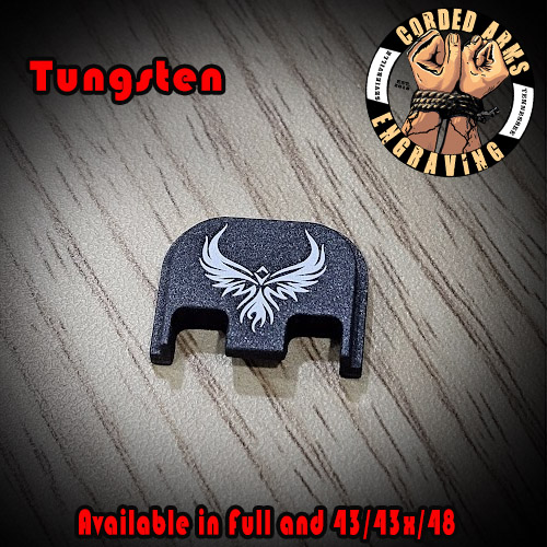 Tags: glock, glock slide plate, custom slide plate, custom glock slide plate, laser engraved slide plate, laser engraved glock slide plate, custom laser engraving, custom clock engraving, Phoenix