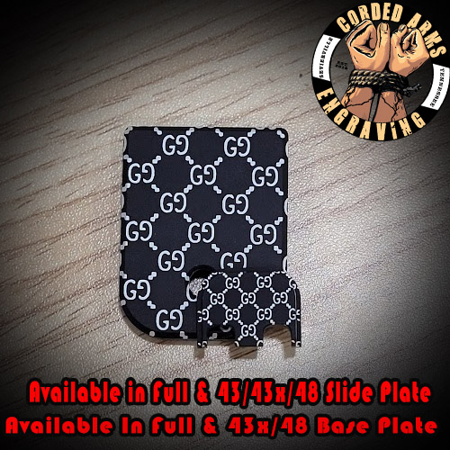 LV or Guicci Polished Laser Engraved Glock Slide Plates