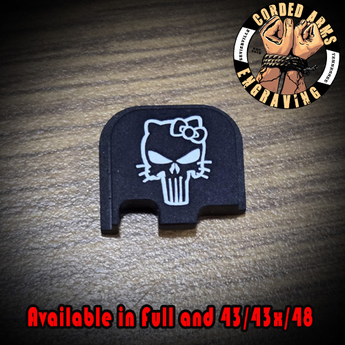 Tags: glock, glock slide plate, custom slide plate, custom glock slide plate, laser engraved slide plate, laser engraved glock slide plate, custom laser engraving, custom clock engraving, Hello Kitty