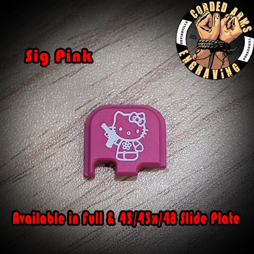Tags: glock, glock slide plate, custom slide plate, custom glock slide plate, laser engraved slide plate, laser engraved glock slide plate, custom laser engraving, custom clock engraving, Hello Kitty