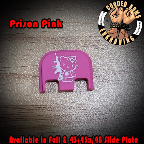 Tags: glock, glock slide plate, custom slide plate, custom glock slide plate, laser engraved slide plate, laser engraved glock slide plate, custom laser engraving, custom clock engraving, Hello Kitty