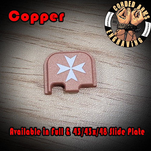 Tags: glock, glock slide plate, custom slide plate, custom glock slide plate, laser engraved slide plate, laser engraved glock slide plate, custom laser engraving, custom clock engraving, Knights Templar Cross, cross