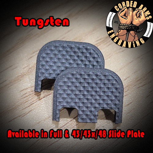 Tags: glock, glock slide plate, custom slide plate, custom glock slide plate, laser engraved slide plate, laser engraved glock slide plate, custom laser engraving, custom clock engraving, Knurl, cnc milling
