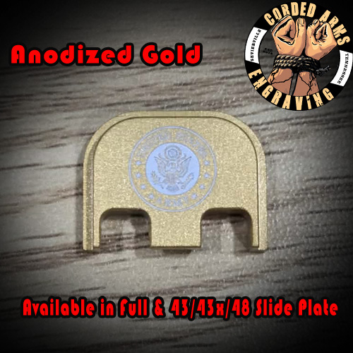 Tags: glock, glock slide plate, custom slide plate, custom glock slide plate, laser engraved slide plate, laser engraved glock slide plate, custom laser engraving, custom clock engraving, army, navy, marines, air force, coast guard