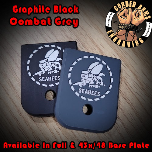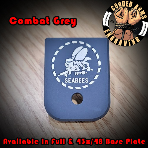 Tags: Glock base plate, glock, glock floor plate, magazine plate, glock magazine plate, laser engraved floor plates, laser engraved glock base plates, United States Navy, US Navy Anchor, Navy, Navy Seabees