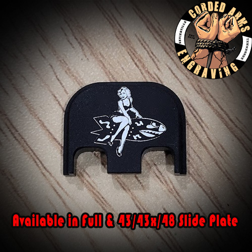 Pinup Bomber Girl Laser Engraved Glock Slide Plate
