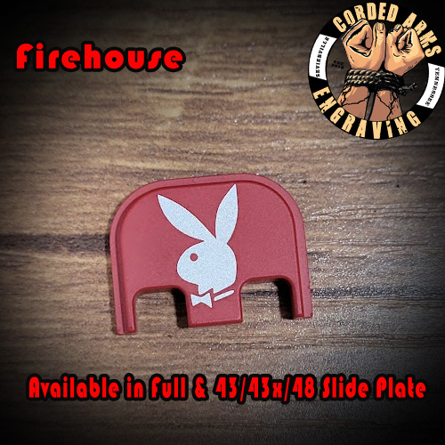 Tags: glock, glock slide plate, custom slide plate, custom glock slide plate, laser engraved slide plate, laser engraved glock slide plate, custom laser engraving, custom clock engraving, PlayBoy Bunny