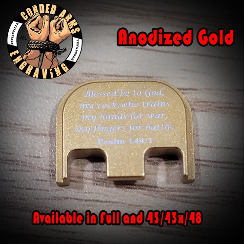 Tags: glock, glock slide plate, custom slide plate, custom glock slide plate, laser engraved slide plate, laser engraved glock slide plate, custom laser engraving, custom clock engraving, Psalm 144:1, christian, bible verses