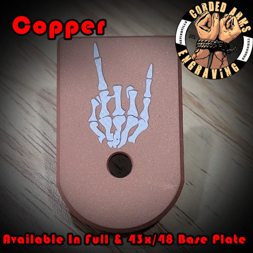 Rock On Skeleton Hand Laser Engraved Aluminum Glock Magazine Base Plates