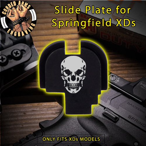Tags: Springfield XDs slide plate, custom back plate, back plate, Springfield, custom Springfield XDs, XD-S, Skull