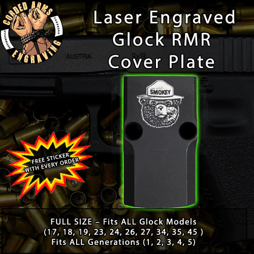 Tags: Smoky The Bear, RMR Cover Plate Gen 3 Engravable, rmr cover plate, rmr plate, rmr, red dot adapter plate, holosun adapter plate, trijicon adapter plate, rmr cover plate, red dot cover plate, trijocon cover plates