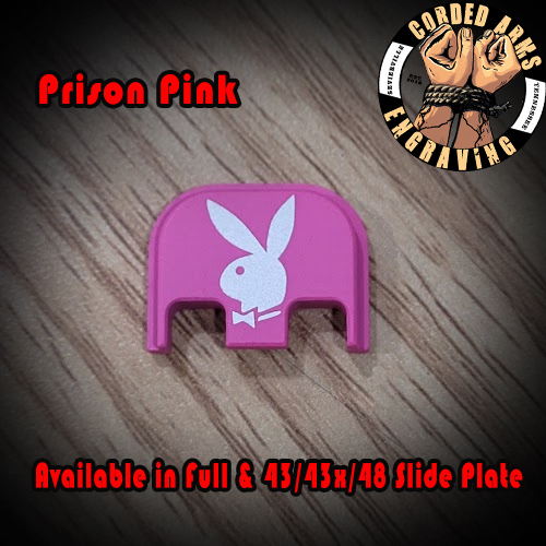 Tags: glock, glock slide plate, custom slide plate, custom glock slide plate, laser engraved slide plate, laser engraved glock slide plate, custom laser engraving, custom clock engraving, PlayBoy Bunny