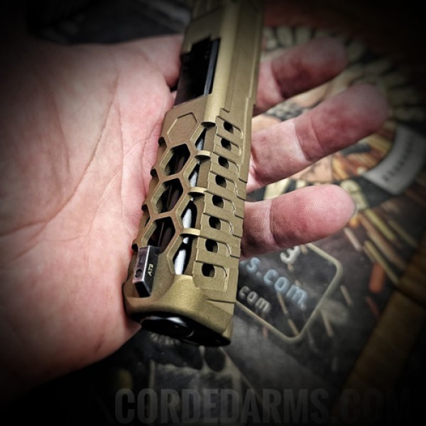 Laser Engraved Glock Slide and Base Plate in Anodized Gold